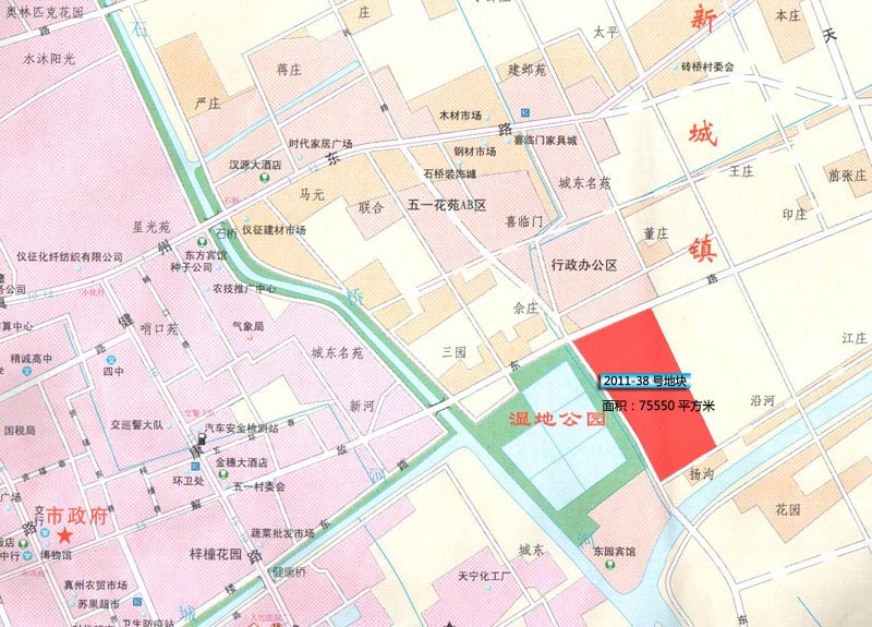 | 2011-38幅 | 东园路东侧,解放东路南侧,前进东路北侧 | 75550 | 商住 其他商服用地 |
