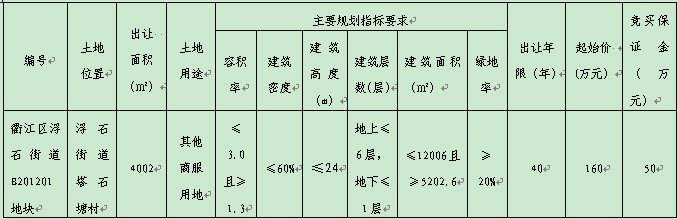 一、挂牌出让地块的基本情况和主要规划指标要求