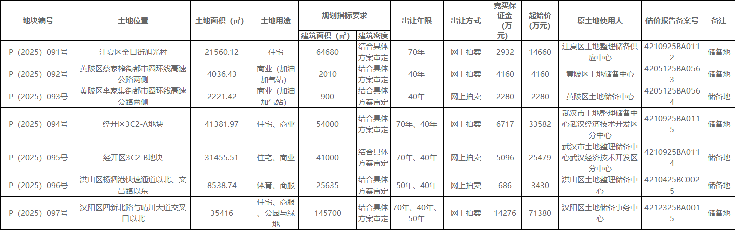 为深入贯彻落实党中央、国务院的决策部署,按照自然资源部、国家发改委《关于实施妥善处置闲置存量土地若干政策措施的通知》、省住建厅等五部门《关于进一步促进房地产市场平稳健康发展的若干措施》及我市印发的《关于进一步盘活存量用地促进房地产高质量发展实施意见》等相关文件精神,我市确定了首批盘活存量用地计划,进一步盘活闲置低效存量土地,化解房地产市场风险,助企纾困,加快化解地方融资平台债务风险,化解金融风险,保障房地产市场平稳健康发展。根据《中华人民共和国土地管理法》、《招标拍卖挂牌出让国有建设用地使用权规定》和《武汉市土地交易管理办法》等有关法律、法规和规定,武汉市自然资源和城乡建设局决定以拍卖方式出让7宗地块的国有建设用地使用权。现将有关事项公告如下: