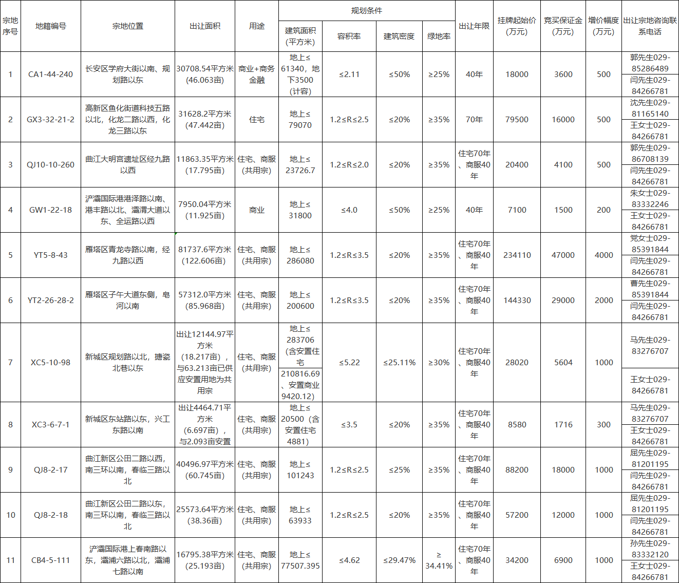 陕西省西安市10月20日至10月31日挂牌出让灞浦六路以北等11幅地块使用权