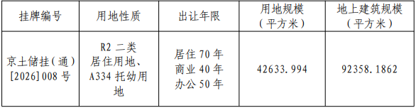 八、本次挂牌出让的详细资料和竞买要求请参阅有关挂牌文件。挂牌文件于 2026 年 2 月 27 日 9:00 起,可在北京市规划和自然资源委员会网站(http://ghzrzyw.beijing.gov.cn)或北京市公共资源交易服务平台网站(http://ggzyfw.beijing.gov.cn)下载。