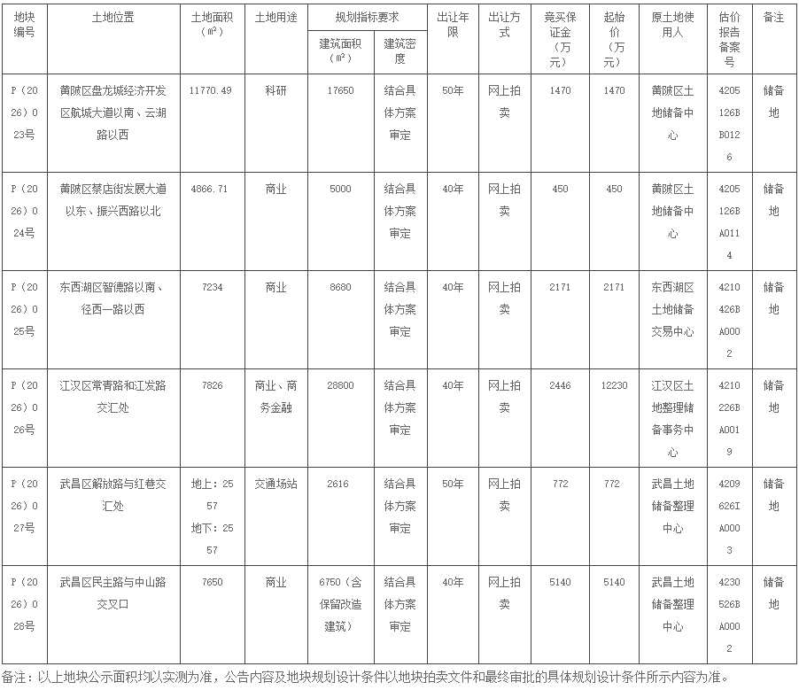 六、本次公开出让公告如有变更或补充,以武汉市自然资源和城乡建设局发布的补充公告为准。